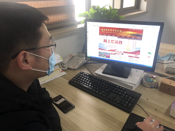 全體黨員佩戴黨徽,在各自辦公室,開啟云祭掃儀式。黨員們登陸“溫州革命烈士紀念館”網站,進入“江心嶼烈士紀念碑公共祭掃”頁面,向烈士紀念碑默哀鞠躬,敬獻鮮花,寫下留言。