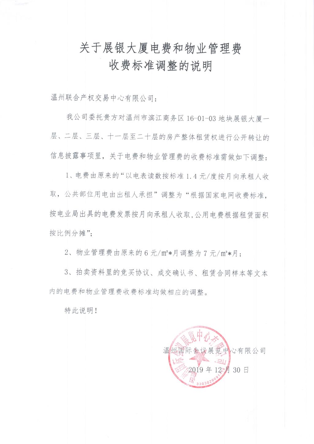 關于展銀大廈部分房產整體8年租賃權項目電費和物業(yè)管理費收費標準調整的說明